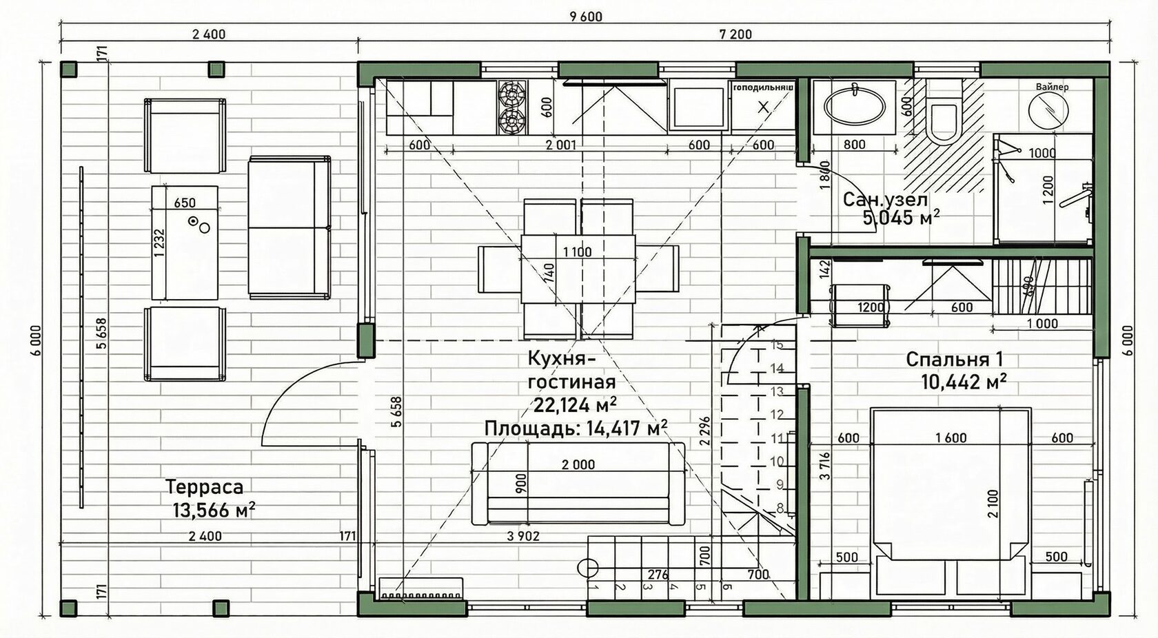 Планировку можно адаптировать под ваш участок: изменить расположение окон, добавить террасу или увеличить площадь отдельных помещений.