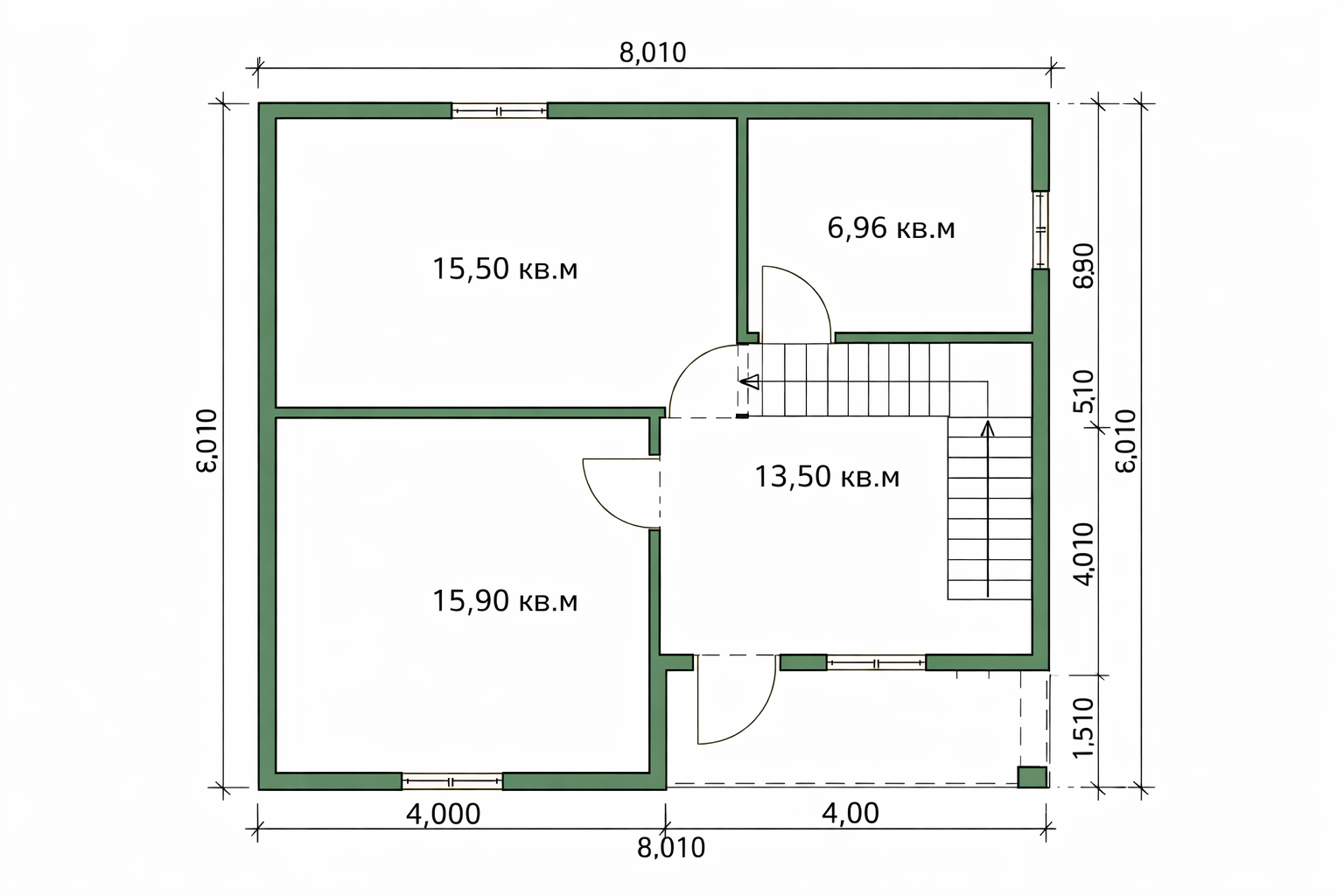 Планировку можно адаптировать под ваш участок: изменить расположение окон, добавить террасу или увеличить площадь отдельных помещений.